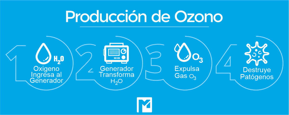 El ozono se obtiene al someter el oxígeno a descargas eléctricas controladas. La molécula de oxígeno O2 se disocia y se combina con otra molécula en forma triatómica O3. El ozono se genera y se aplica in-situ, es decir, no se envasa, ni se transporta. Se produce con el generador de ozono y se aplica al instante.
